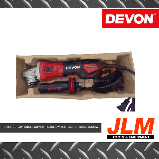 DEVON 100MM BRUSHLESS ANGLE GRINDER SLIDE SWITCH 2838-13-100BL (1300W)