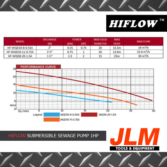 HIFLOW SUBMERSIBLE SEWAGE PUMP WITH FLOATER / HF-WQ10-11-0.75A (1HP)