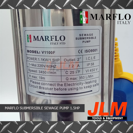 Marflo MF-V1100F Submersible Sewage Pump With Floater Switch (1.5HP)